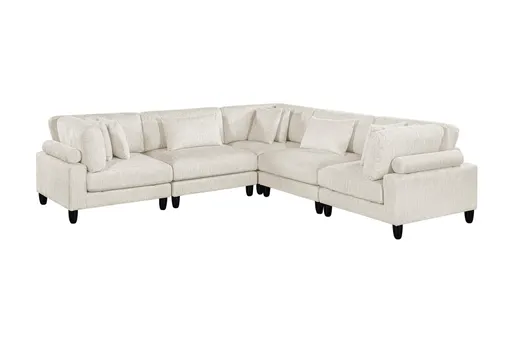 Transform your living room with the Artem Beige 5-Piece Modular Sectional. This versatile sectional includes two armless chairs and three corner units, allowing you to customize your seating arrangement to fit any space. Upholstered in durable 100% polyester, this sectional is built to last and offers comfort for everyday use.