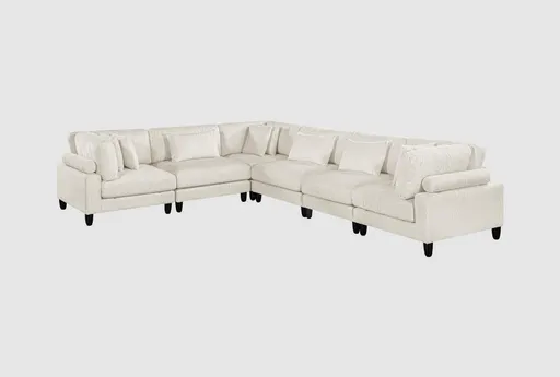 The Artem Beige 6-Piece Modular Sectional (3 Armless Chairs + 3 Corner) offers flexible seating for living rooms that need adaptable layouts for conversation, lounging, or hosting. Upholstered in 100% polyester fabric and built on a plywood and hardwood frame with rubberwood legs, it combines comfortable seating with everyday durability. The symmetrical configuration and removable sections make it simple to plan placement, and oversized item tips help with delivery and setup.