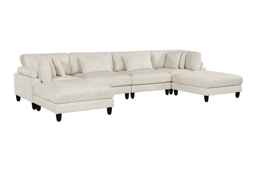 The Artem Beige 6-Piece Modular Sectional With Ottomans (2 Corner + 2 Armless Chairs + 2 Ottoman) offers flexible seating for larger living rooms, letting you arrange a chaise or open configuration to suit your space. Upholstered in 100% polyester fabric, it provides a soft, approachable feel with easy-care maintenance. A plywood and hardwood frame with rubberwood legs gives reliable support, and the included ottomans expand seating and lounging options for family time or entertaining.