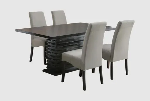 The Artemis Black Square Wood Dining Table Set For 4 is a perfect blend of modern and contemporary styles, designed to elevate your dining experience. This elegant set features a sleek black square table made from high-quality Asian hardwood, paired with comfortable grey fabric chairs. Ideal for small dining spaces, this set combines functionality with a minimalist aesthetic.