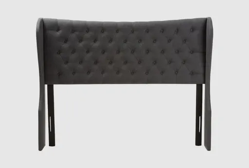The Aryanna Queen Headboard brings a modern wingback presence to your bedroom with button-tufted detailing and nailhead trim. Upholstered in soft dark grey fabric over foam padding, it pairs a tailored tufted panel with gently curved edges for a refined profile. The wingback silhouette offers head and neck support while creating a striking focal point above a queen bed. Designed as an upholstered headboard, it provides a polished backdrop that elevates bedroom decor and works equally well in apartments or condos where thoughtful pieces make an impact. Beneath the fabric face, wood support rails and polyester backing add durability while keeping the overall profile streamlined. The horizontal orientation aligns with queen bed proportions and the panel layout is compatible with standard mounting positions. For care, vacuum regularly and spot clean; professional cleaning is recommended for deeper blemishes to preserve the fabric and nailhead detail. Imagine curling up with a book or watching TV in bed against a plush, button-tufted backrest that feels both comfortable and composed.