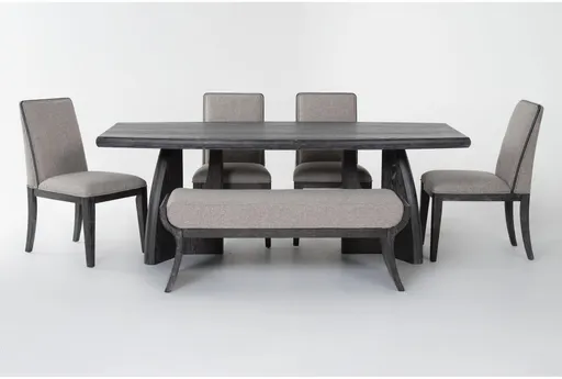 Like contemporary works of art you can't help but admire, our Astra dining set offers unique and eye-catching designs that will be the toast of your space. Striking and sculptural, the curved silhouettes boast a futuristic modern look – perfect for capturing attention and starting conversation. A combination of hardwood and oak veneer grounds the pieces with solid, sturdy materials.