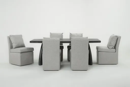Astra Black 84" Surfboard Dining Table With Mara II Modern Grey Upholstered Armless Chair With Wheels Set for 6 | Furnzy.com - Shop local furniture stores in one place