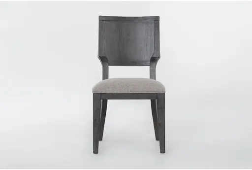 The Astra Black Wood + Grey Fabric Dining Side Chair with Back blends modern design with comfortable functionality, perfect for your dining room or kitchen. Crafted from Asian hardwood with an oak veneer, this chair features a sleek black heron finish and a soft grey fabric cushion. Its curved and armless design offers a stylish yet practical seating option for any contemporary space.
