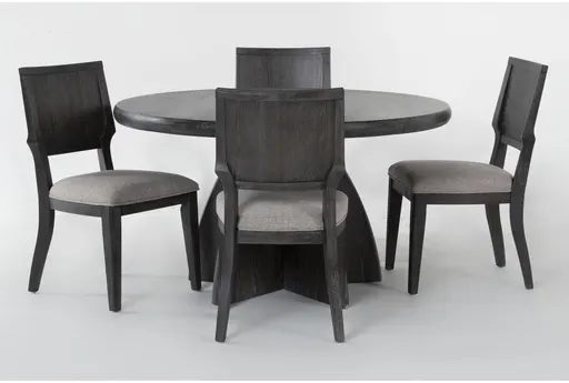Astra II Black 54" Round Dining With Wood + Grey Upholstered Fabric Chair Set For 4 | Asian Hardwood | Furnzy.com - Shop local furniture stores in one place