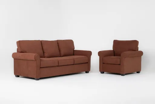 The Athos II Cinnamon 86" 2 Piece Queen Sleeper Sofa & Chair Set brings flexible seating and overnight functionality to your living room. Upholstered in 100% polyester fabric, it offers easy-care performance for high-traffic spaces while maintaining a comfortable, casual feel. The sofa includes a queen-size sleeper that pulls out to create a guest bed, and the matching chair completes the coordinated set for everyday lounging and entertaining.