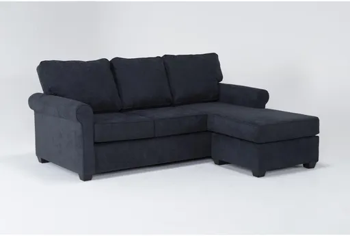 Athos Midnight Blue Fabric 86" Sofa with Reversible Chaise | Loose Reversible Back | Rolled Arms | Furnzy.com - Shop local furniture stores in one place
