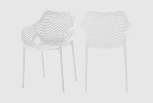 Enhance your outdoor dining experience with the Atlas White Outdoor Patio Dining Chair Set of 4. These modern chairs are perfect for any patio, terrace, or veranda, offering both style and functionality. Their sleek design and polypropylene plastic material make them a durable choice for outdoor settings.