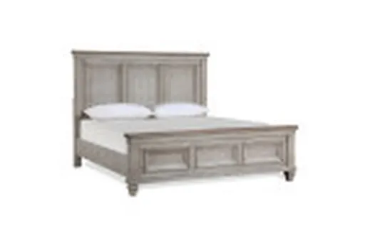 The Grey Augustus California King Wood Panel Bed brings traditional character and a substantial presence to the bedroom. Its tall panel headboard and matching footboard show beveled rectangular panels and spindle-inspired posts that highlight the natural acacia grain beneath a soft grey wash. The platform profile provides a clean, grounded silhouette while the tapered spindle legs and block-style base add a refined, stable stance. This california king bed blends classic detailing with practical design so you can dress it up with layered bedding or keep the look minimal for a calming primary bedroom retreat.