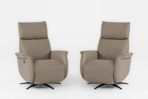 When it's time to unwind, our Aurelius leather power swivel recliner with USB is where you want to be. Enjoy smooth motion at the press of a button, plus the restful movement of a swivel mechanism and the welcome support of a manual adjustable headrest. Featuring 100% top grain leather seating in multiple colors, the design offers elevated style and luxury. An attached battery allows you to float the recliner anywhere you want.