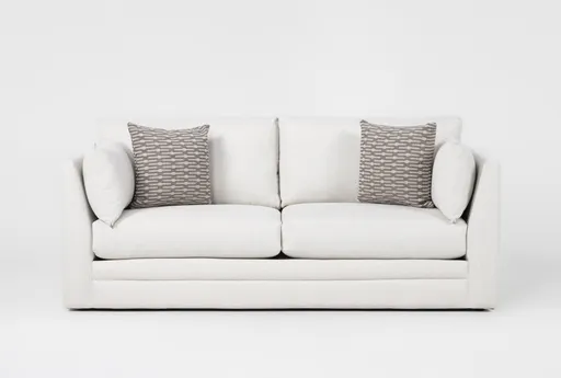 The Austen Foam II Beige 86" Condo Sofa offers a comfortable and stylish seating solution for your living room. This casual sofa is upholstered in 100% polypropylene fabric, ensuring durability and ease of maintenance. With its removable cushions and flared arms, this sofa combines functionality with a soft, neutral color palette that complements any decor.