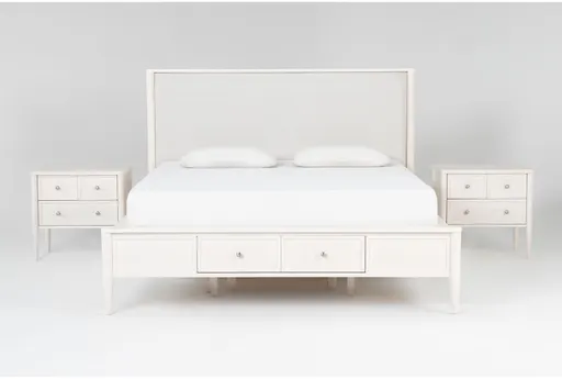 Austen White California King Side & Footboard Storage Wood & Upholstered Platform 3 Piece Bedroom Set With 2 3-Drawer Nightstands | Furnzy.com - Shop local furniture stores in one place