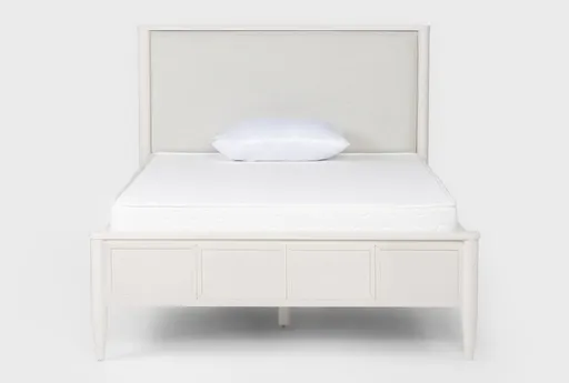 As part of a complete whole-home collection that was developed entirely by Living Spaces, the Austen White wood upholstered bed reflects a unique and thoughtful approach to design. With a refined all-American look and extensive functionality, this piece is a natural and purposeful addition to your bedroom. A textured warm white finish accentuates oak veneer and solid wood, while an upholstered headboard provides soft support. We offer options with and without storage, so you can enjoy no storage, side storage, footboard storage, or side and footboard storage.