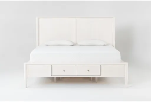 Enhance your bedroom with the Austen White King Wood Platform Bed with Side & Footboard Storage. This traditional bed is perfect for creating a serene and organized sleeping space. The white finish and oak veneer add a timeless touch to your room. Includes convenient storage drawers for extra functionality. Constructed with oak veneer and solid rubberwood for durability. Mildew resistant, ensuring a clean and healthy environment.