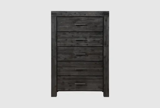 The Autumn Grey Wood 5-Drawer Chest combines rustic charm with practical storage solutions. Made from solid acacia wood and veneer, this chest provides a timeless addition to any bedroom. The grey finish adds a neutral, natural touch that complements various decor styles. Features five spacious drawers for ample storage. Constructed from solid acacia wood with veneer accents. Rustic grey finish enhances the natural wood grain.