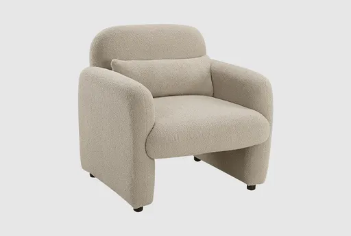 The Avalon Taupe Accent Chair is a stylish and comfortable addition to any living space. Its elegant taupe color and boucle fabric upholstery create a sophisticated look, while the foam padding over pocket coils ensures maximum comfort. The chair also features attached back and seat cushions for added convenience and comes with a matching pillow.