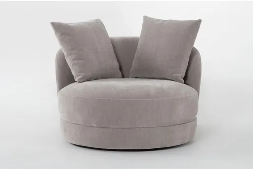 The Avaya Truffle Grey Fabric Swivel Barrel Chair blends a modern rounded silhouette with oversized, deep-seated comfort designed for contemporary living. Upholstered in truffle grey fabric with subtle polyurethane trim, the armless profile and curved back deliver a streamlined club feel while loose reversible back cushions keep support feeling fresh. A smooth swivel mechanism provides 360 degree rotation for easy movement, and foam core seating wrapped in dacron offers a plush initial feel that resists flattening. This piece reads as modern living room furniture and serves as a smart small space solution for apartments, dorms, home offices, and bedroom corners.