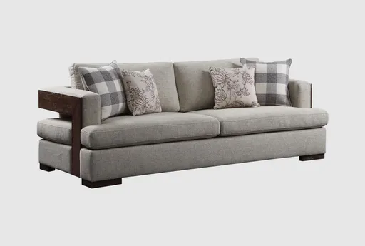 The Avianna Grey Sofa with 4 pillows is a perfect addition to your living room. Its casual style and grey fabric make it a versatile piece that complements various decor themes. Designed for comfort, it features foam cushions and a tight back for support. Includes four pillows for added comfort. Durable fabric and hardwood frame construction. Curved design with arms for a modern touch.