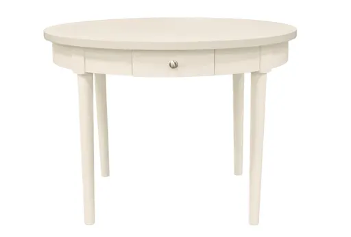 Avon Natural 42" Round Dining Table brings farmhouse bistro charm to compact dining rooms and breakfast nooks with a 42-inch tabletop that comfortably seats four. The matte white painted finish, smooth polished edge and tapered legs create a clean, cottage-inspired silhouette, while a single drawer keeps napkins or flatware within easy reach. The table combines solid and manufactured wood with rubberwood elements and an MDF and veneer tabletop for stable everyday use and a light visual presence in small spaces.