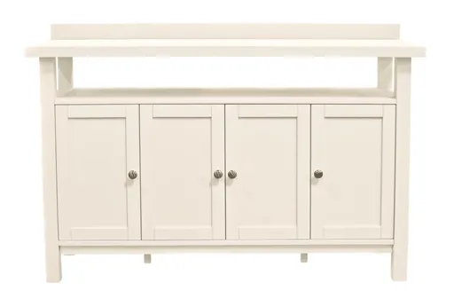 Avon Natural 54" Sideboard offers clean farmhouse character with practical storage that suits a dining room, entryway or living area. Built with a rubberwood frame, MDF panels and metal hardware, the matte white finish keeps the look light while standing up to everyday use. Cabinet doors conceal shelves for organized storage while the top surface provides room for display or media components.