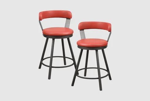 Enhance your kitchen or dining area with the Axel Red Faux Leather Swivel Counter Height Stool Set Of 2. These stools feature a striking industrial design with a modern touch, making them a perfect addition to any contemporary space. The vibrant red faux leather upholstery adds a bold pop of color, while the sturdy metal base ensures durability and stability.