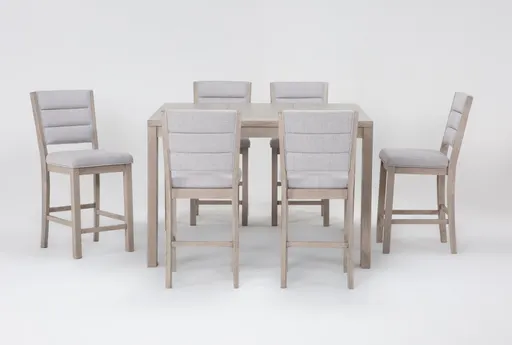 The Aysha Grey Natural Wood Extendable Square Counter Height Set for 6 is designed to bring functionality and style to your dining or kitchen space. With its modern design and durable construction, this set is perfect for both everyday meals and special gatherings. The extendable feature allows you to accommodate more guests with ease.