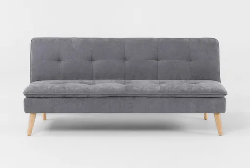 The Bailey Grey 66" Convertible Futon / Sofa Bed is the perfect addition to your living room with its modern design and versatile functionality. Upholstered in a soft grey fabric, this futon features tufted embellishments that add a touch of sophistication. The sturdy rubberwood legs provide stability and durability, making it ideal for everyday use. Modern design with tufted embellishments. Convertible functionality for use as a sofa or twin bed. Sturdy rubberwood legs for added stability.