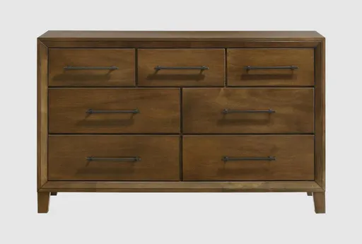 The Bailie Brown 7 Drawer Dresser brings roomy, practical storage to the bedroom with seven spacious drawers that keep clothing and linens organized. Made of rubberwood with a warm brown finish, it pairs durable everyday performance with a casual profile that works well in casual and transitional settings. Thoughtful scale and a compact footprint make it simple to position against a wall or at the foot of the bed to maximize storage without crowding the room.