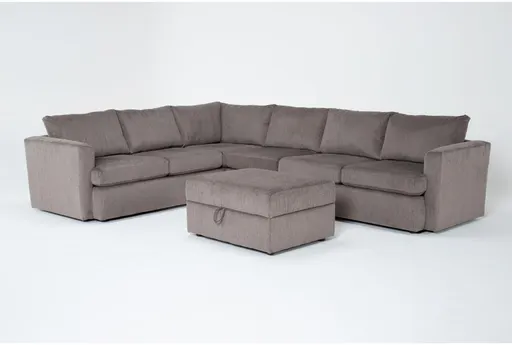 Basil Fabric Modular 125" 4 Piece L-Shaped Sectional Sofa & Ottoman creates your personal comfort zone with a design that adapts to your living room space. Its neutral upholstery and streamlined track arms blend beautifully with any décor style as a stylish furniture piece for your home.