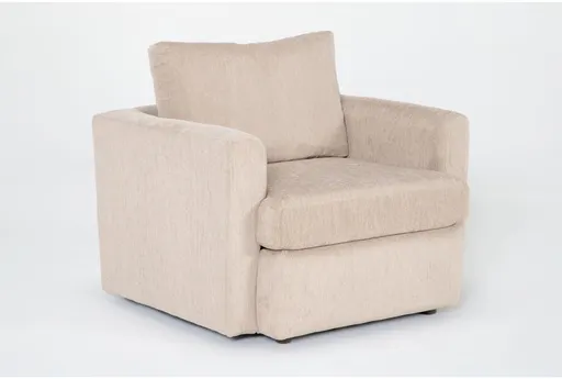 Enhance your living room with the Basil Putty Beige Fabric Arm Chair. This modern club chair features a soft Bear Hug Putty color that adds a warm, inviting touch to any space. Made with 100% polyester fabric, it ensures durability and comfort for years to come. Features supportive track arms for added comfort. Constructed with solid alder wood for lasting strength. Perfect addition to any living room with its neutral, modern design.