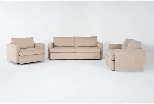 Basil Putty Beige Fabric 3 Piece Queen Memory Foam Sleeper Sofa Bed Loveseat & Swivel Oversized Chair & a Half Set | Furnzy.com - Shop local furniture stores in one place