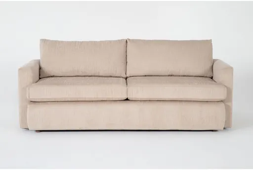 Enhance your living room with the Basil Putty Beige Fabric 85" Queen Memory Foam Sleeper Sofa Bed featuring track arms. This modern sleeper sofa in Bear Hug Putty color offers both style and comfort, making it a perfect addition to any home. Upholstered in 100% polyester fabric, this queen-sized sofa bed promises durability and a cozy feel.