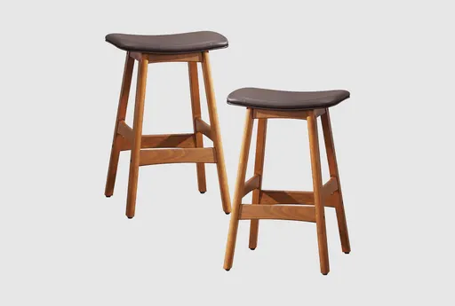 Baylor Brown Wood Saddle Kitchen 25.5" Counter Height Stool Set Of 2 | Backless | Armless