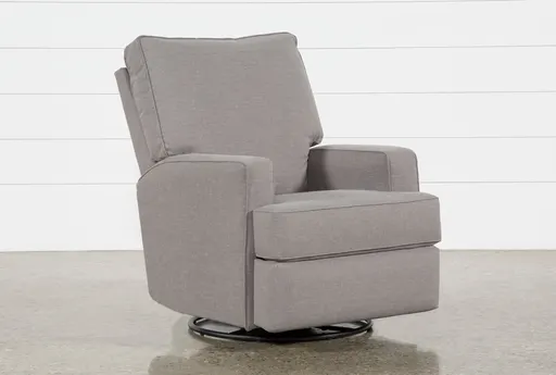The Becca Nursery Swivel Glider Recliner | Rocker in grey combines comfort and functionality, making it a perfect addition to any nursery. This versatile recliner features foam cushions and track arms, ensuring a supportive and cozy experience for parents and babies alike. Made in the USA, the Becca Nursery Swivel Glider Recliner offers a timeless design that complements a variety of living spaces. Features a swivel and rocking motion for added flexibility. Constructed with 70% polyester and 30% cotton fabric for durability. Designed with a tight back and supportive arms for maximum comfort.