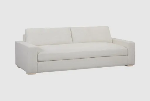 The Beckham Cream Upcycled Basketweave 96" Sofa brings modern lines and practical comfort to your living room, seating three on supportive medium-firm cushions. Its upcycled basketweave fabric adds subtle texture while reducing material waste, and a rubberwood base provides dependable support for everyday use. The tight seat and removable back cushions make it easy to relax, entertain, and keep your space feeling neat.
