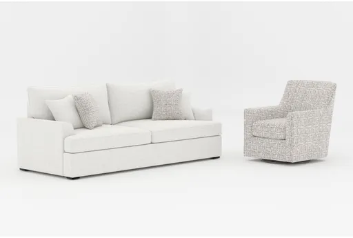 Belinha II Opal White Fabric 95" Queen Memory Foam Sleeper Sofa Bed|Belinha II Oyster Beige Grey Fabric Swivel Glider Accent Armchair | Furnzy.com - Shop local furniture stores in one place