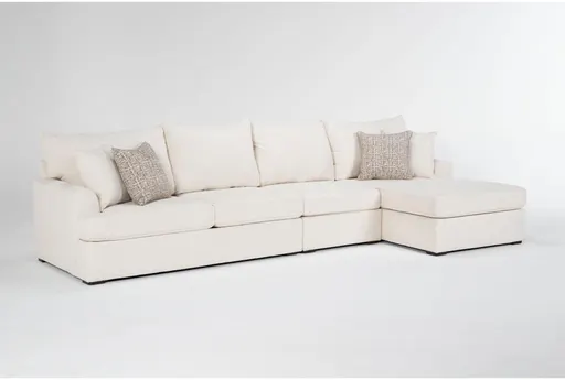 Introducing the Belinha II Opal White Ivory Fabric 138" Modular 3 Piece Full Memory Foam Sleeper L-Shaped Sectional with Right Arm Facing Chaise, the perfect addition to your living room for casual comfort and style. This sectional offers ample seating with a sophisticated design, featuring a full memory foam sleeper for added functionality. Designed with a right arm facing chaise, it provides an inviting space for relaxation.