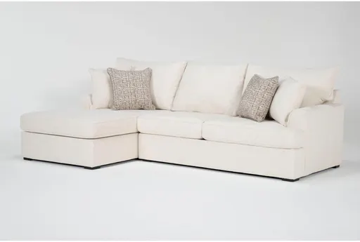 The Belinha II Opal White Ivory Fabric 107" Modular 2 Piece Sectional with Left Arm Facing Chaise is a perfect addition to your living room. Designed for comfort and style, this sectional features a spacious L-shaped sofa chaise. The track arms add a modern touch while the soft ivory fabric ensures a cozy feel.