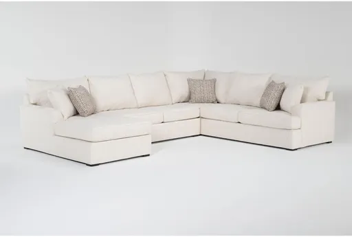 Belinha II Opal White Ivory Fabric 140" Modular 4 Piece U-Shaped Sectional with Left Arm Facing Chaise | Track Arms