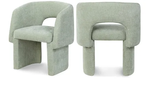 The Bellet Mint Chenille Upholstered Dining Chair brings a touch of modern style to your dining room or kitchen. Its swoop arms and recessed armrests offer both comfort and support, while the mint color adds a soft, inviting feel to your space. Constructed with chenille fabric, eucalyptus wood, plywood, iron, and foam, this chair combines durability with a contemporary look. Features comfortable swoop arms and recessed armrests. Mint chenille upholstery for a soft and inviting appearance. Constructed with durable materials for long-lasting use.