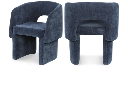 Tight back construction and a medium-firm seat deliver supportive comfort for long dinners, casual work sessions, or extra seating in small rooms. The navy chenille offers durable upholstery that is easy to maintain with regular vacuuming and spot cleaning, with professional cleaning recommended for tougher stains. Designed as a modern living room furniture-friendly piece and a small space solution, Bellet works equally well as dining seating, entryway accent, or home office companion to add a sculptural statement without overpowering the room.