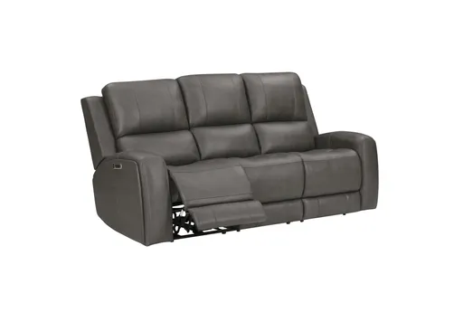 Belmont Grey 88.5" Power Zero Gravity Sofa brings power reclining comfort to your living room with a casual silhouette that works in modern and transitional spaces. Upholstered in 80% top grain leather on primary seating surfaces with 20% leather match on secondary panels, it balances a premium feel with practical wear resistance. Adjustable headrests and a smooth power reclining system let you settle into a zero gravity position for relaxed evenings and long weekends.