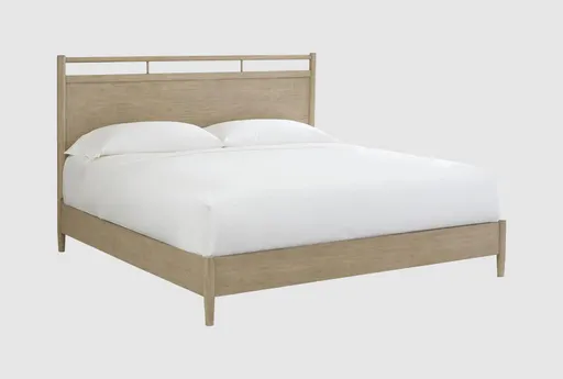 The Benedict King Natural Wood Platform Bed with USB combines modern style with functionality. Crafted from acacia with select veneer, this champagne-colored bed brings a touch of sophistication to your bedroom. Designed for an Eastern King mattress, it features a convenient USB port for easy device charging.