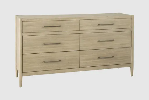 The Benedict Natural Wood 6-Drawer Dresser in Acacia is a perfect addition to any modern bedroom. Crafted from acacia with select veneer, this dresser offers ample storage with its six spacious drawers. The natural wood finish and tapered legs add a touch of contemporary charm to your sleeping space.
