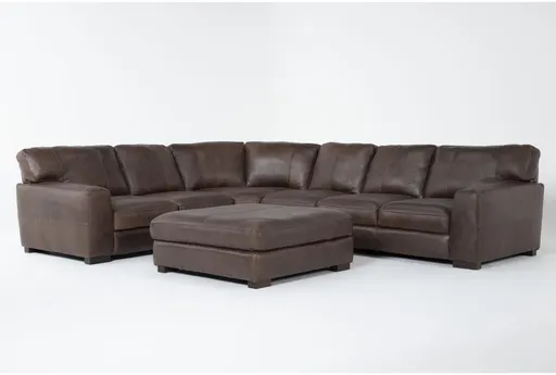 Benjamin Brown 100% Top Grain Italian Leather 138" 4 Piece L-Shaped Modular Sectional and Cocktail Ottoman | Reversible | Furnzy.com - Shop local furniture stores in one place