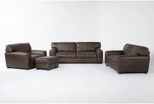With 100% top grain Italian leather upholstery and luxurious designs, our Benjamin leather living room set offers cream-of-the-crop quality inside and out. Rigid paneled exteriors reinforce the exceptionally strong frames, while Pirelli webbing suspension provides lasting support. With generous proportions, plush cushions and thick foam padding that makes the arms especially irresistible and cozy to lean against, this set brings a level of comfort that will leave everyone in a state of complete bliss.