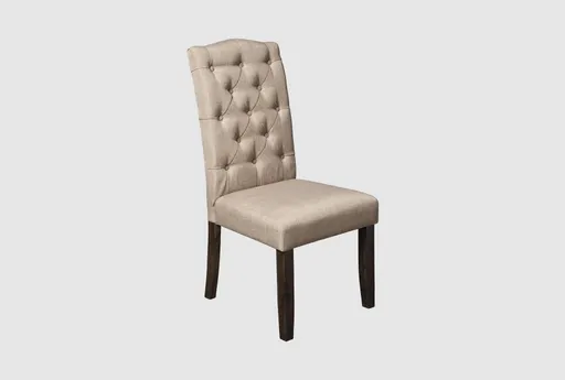 Enhance your dining room or kitchen with the Bennie Farmhouse Salvaged Grey Wood Button Tufted Upholstered Parson Chair Set of 2. These armless chairs offer both comfort and style, featuring a charming farmhouse design that fits perfectly in any food prep and serving space. The button tufted detailing on the beige fabric adds a classic touch to these versatile chairs.