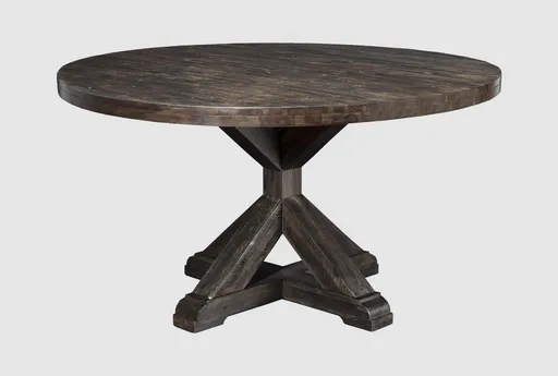 The Bennie Farmhouse Salvaged Grey Wood 54" Round Dining Table is the perfect centerpiece for your dining room or kitchen. Its salvaged grey finish and round shape bring a rustic yet timeless appeal to any space. Constructed from acacia solids, this table comfortably seats up to six people, making it ideal for family meals and gatherings.