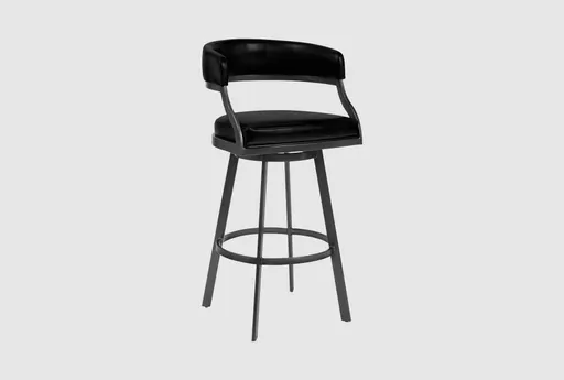 Introducing the Bernini 26" Counter Height Swivel Barstool, a perfect blend of modern style and functionality. This barstool features a striking vintage black faux leather seat, paired with a sturdy mineral metal frame. Its swivel design adds convenience and comfort, making it an ideal choice for your dining room or kitchen.