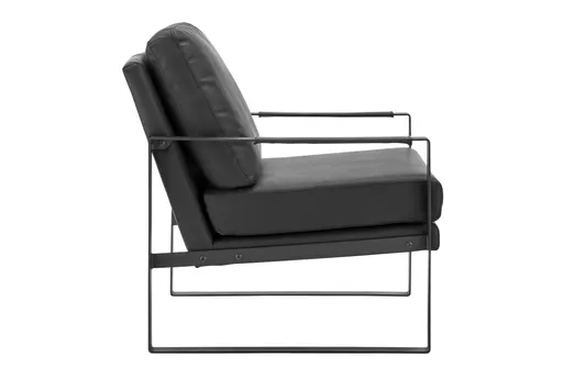 Bettina Black Faux Leather Accent Arm Chair adds rustic charm with its sleek modern silhouette, tight back design and comfortable polyurethane leatherette upholstered finish. This contemporary armchair is perfect for any living room space or bedroom, creating an ideal spot to read and relax. This design is the perfect bedroom chair, reading chair, club chair or accent chair for living room.